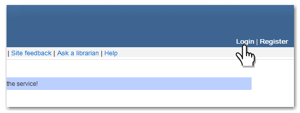 Start by visiting the library catalogue. Log in by selecting the “Login” link on the top right of the page.