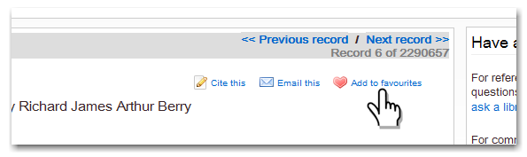 Once you’ve logged in, you’ll see the option to “Add to favourites” towards the top right corner of item records.